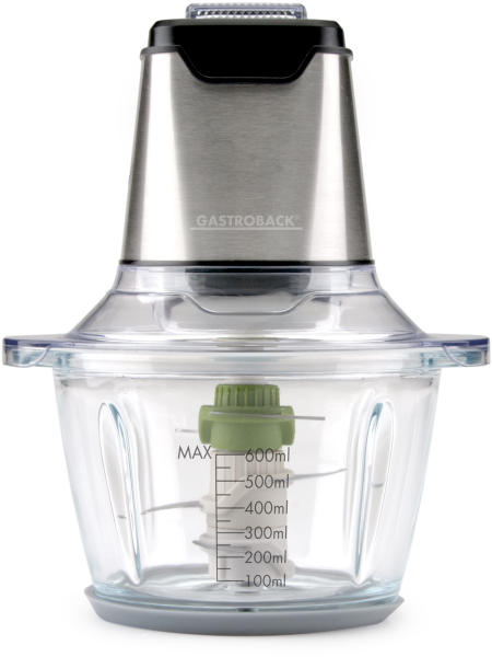 Gastroback 40961 Design Mini Chopper Plus Többfunkciós aprítógép, 400W, 600ml, Rozsdamentes acél/Fekete (40961)