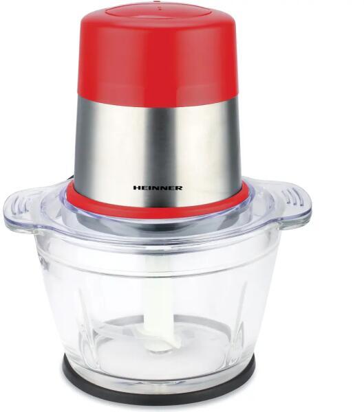Zöldség aprító Heinner Cayenne 1 HMC-D300RD, 300 W, űrtartalom 1 L, üvegtál, rozsdamentes acél pengék, 2 sebesség, piros Sokkal könnyebben és gyorsabban főzhet a HMC-D300RD zöldségaprítóval Maximális teljesítmény: 300W és 2 sebesség A szecskázó minden konyhában alaptermék, nagy teljesítményű, 300 W-os motorral rendelkezik, amelyet kifejezetten a gyors és hatékony eredmények érdekében terveztek. Két sebességet is kínál, így tökéletesen turmixol, az aprítandó hozzávalóktól függően. Üvegtál, 1 literes űrtartalom Tágas és tartós. Az aprítógéphez tartozik egy strapabíró, 1 literes üvegtál, amelyben jelentős mennyiségű zöldséget lehet aprítani. Rozsdamentes acél pengék A rozsdamentes acél pengék hatékonyak és tartósak. Ezek a receptekben felhasználni kívánt ételek finomra aprítására szolgálnak. Biztonsági rendszer Használja biztonságosan a szecskázót a csúszásgátló lábakkal ellátott talpnak köszönhetően, de a speciálisan kialakított rendszernek is köszönhetően, amely nem teszi lehetővé a kések burkolat felhelyezése nélkül történő működtetését.